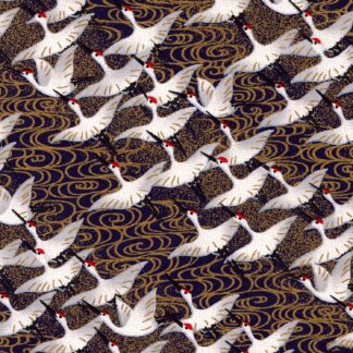 Papier japonais, chiyogami (yuzen), vol de grues blanches sur un fond violet