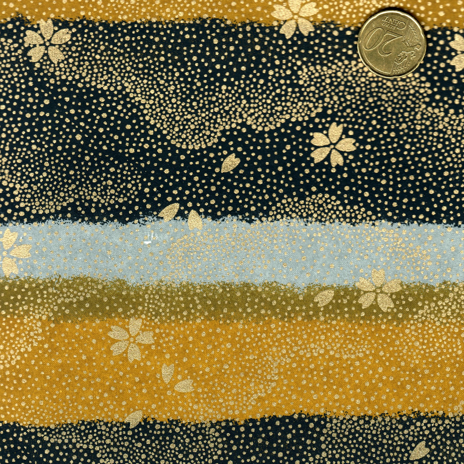 Papier japonais, chiyogami, (yuzen),sérigraphie de motifs traditionnels sur un fond de couleurs noires et moutardes.